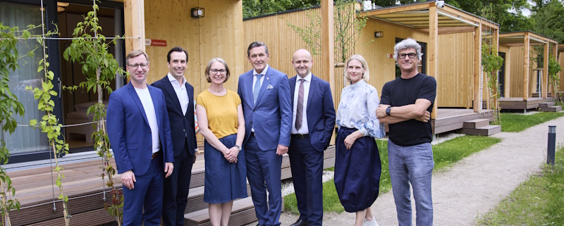 am Bild v.l.n.r: Kay Fröhlich, Geschäftsführer VERKEHRSBUERO HOSPITALITY, Martin Winkler, Vorsitzender des Vorstandes VERKEHRSBUERO, Michaela Schüchner, Bezirksvorsteherin 1140 Wien, Peter Hanke, Bundesminister für Innovation, Mobilität und Infrastruktur, Norbert Kettner, Tourismusdirektor Wien, Birgit Wallner, Vorständin VERKEHRSBUERO, Rupert Königswieser, RAUMWERKSTADT (c) VERKEHRSBUERO/APA-Fotoservice/Ben Leitner
