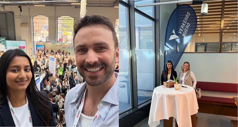 Am 13. März 2026 präsentierte sich unser VERKEHRSBUERO Recruiting-Team auf der Tourism Career Fair 2026 und nutzte die Messe, um das Unternehmen als attraktiven Arbeitgeber zu positionieren. Im Rahmen eines dreiminütigen Pitches stellten unsere HR-Expertin Gurpreet Kaur und Teamleiterin Tanja Opelka (am Bild oben rechts) unser Unternehmen vor und gab einen kompakten Einblick in die vielfältigen beruflichen Perspektiven, die Studierenden und Berufseinsteigerinnen offenstehen. Zusätzlich war das Team mit einem eigenen Messestand vertreten und führte zahlreiche Gespräche mit interessierten Besucherinnen. Besonders das Interesse von Dualstudierenden war außergewöhnlich hoch, direkt vor Ort gingen zahlreiche Bewerbungen ein. Daher plant das VERKEHRSBUERO ab Herbst ausgewählte Talente parallel zu ihrem Studium einzustellen und ihnen ein Rotationsprogramm durch verschiedene Unternehmensbereiche zu ermöglichen.